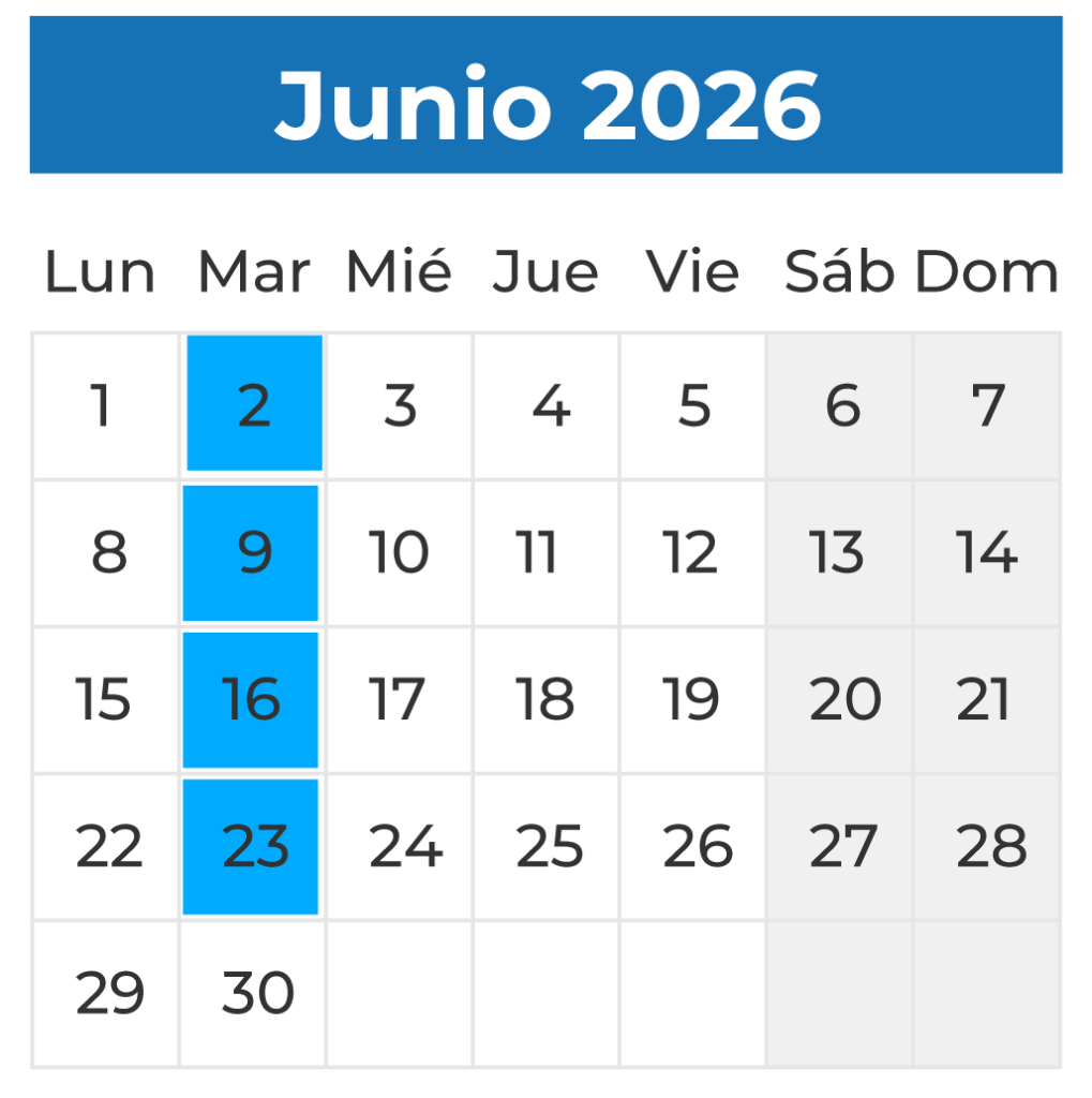 Martes de 18 a 21h.